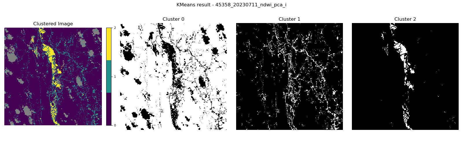 | NDWI feature with PCA Cluster 2 includes the flooded area with less noisy pixels. |